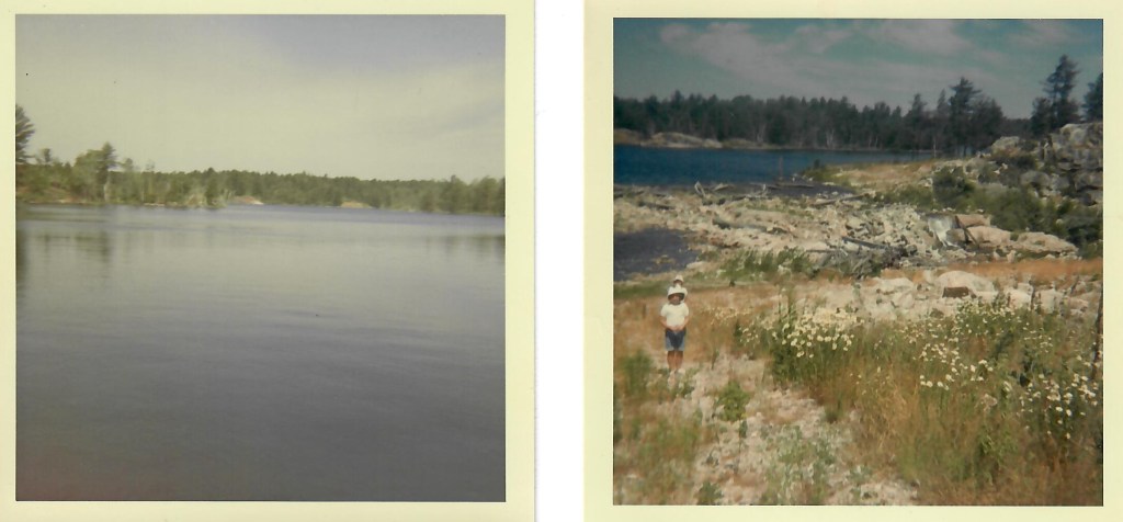 After that, there was a real scurry for yellow flatfish and three poles started casting off the stern. On the second cast, Nick hooked one but just as Dad (my Grandpa) was getting the net ready, it took a dive and believe it or not the snap where the hook goes broke in two and away went Nik’s pike with a lovely yellow lure lodge someplace in him. Nick decided to do some trolling so I went with him. Trolled all the way down into Beaverton Bay with only one strike. As it neared dusk, the mosquitoes took over and we were forced to make tracks for the boat, trailing a horde of hungry ones with us.