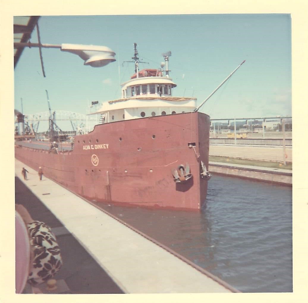 Got up at 9:30 am. Skies clear but still windy. Had breakfast and we all decided to go into town. Rented 2 taxi cabs and off we went. Started out at the Soo Locks. Boy, what an operation. Watched the Alva C Dinkey lock down. From there we walked across the street to the Old Town. All sorts of antiques. Took the train ride around town. It took us across the International Peace Bridge. What a sight: the locks, St Mary’s rapids, and a real good view of Superior. Had lunch at the Lamplighter. From there we walked down to the freighter Valley Camp. That was quite a tour, from stem to stern, on deck and below. Called for a cab in the Captain’s quarters.
