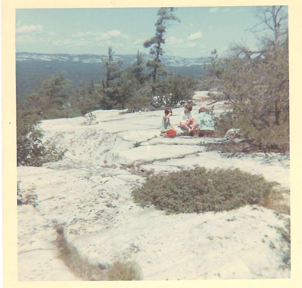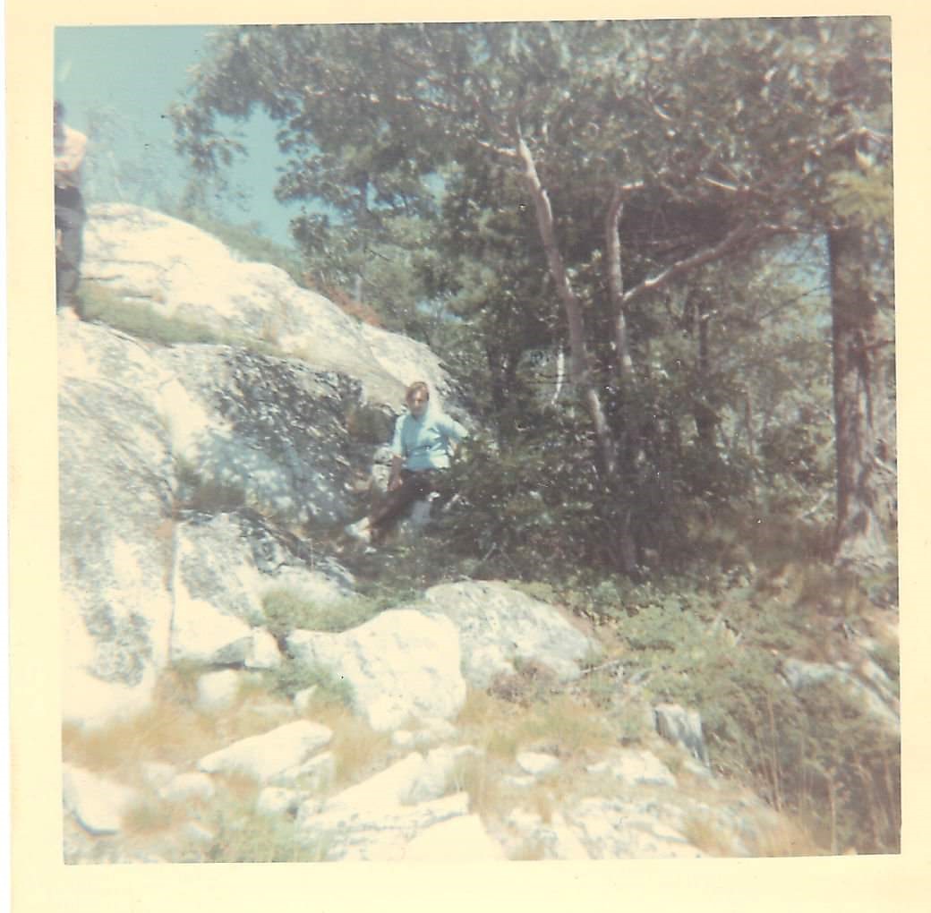 Had a short break after that and Lois decided to stay there. The rest of us forged ahead. Reached the top and headed down the other side by Crater Lake. Got about halfway and down decided to stop. Kids getting tired. Had our lunch under some pine trees. John went off himself. He did reach the lake and said water was quite warm. Sat for a while admiring the view and getting our second wind.
